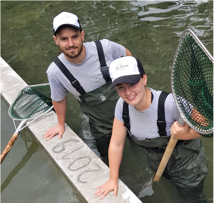 wir sind Johanna und Markus Rohn aus Grünau im Almtal. Gemeinsam führen wir seit ziemlich genau 2 Jahren die Jagersimmerl-Fischerei. Davor haben wir ganz andere Wege verfolgt und für einige Jahre im Salzburgerland in Hintersee gelebt. Ich (Johanna) habe Molekularbiologie und medizinische Biologie studiert und nebenbei in einem DNA-Analyselabor für Hunde gearbeitet. Markus hat eine Ausbildung als Förster absolviert und war in den letzten Jahren bei den Österreichischen Bundesforsten tätig.