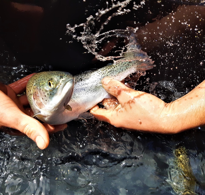 Bei uns gibt es fangfrische Forellen und Saiblinge in Bio-Qualität.