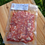 klein geschnittenes Fleisch/Abschnitte und Innereien für Ihr Haustier vakuumverpackt, war tiefgekühlt
